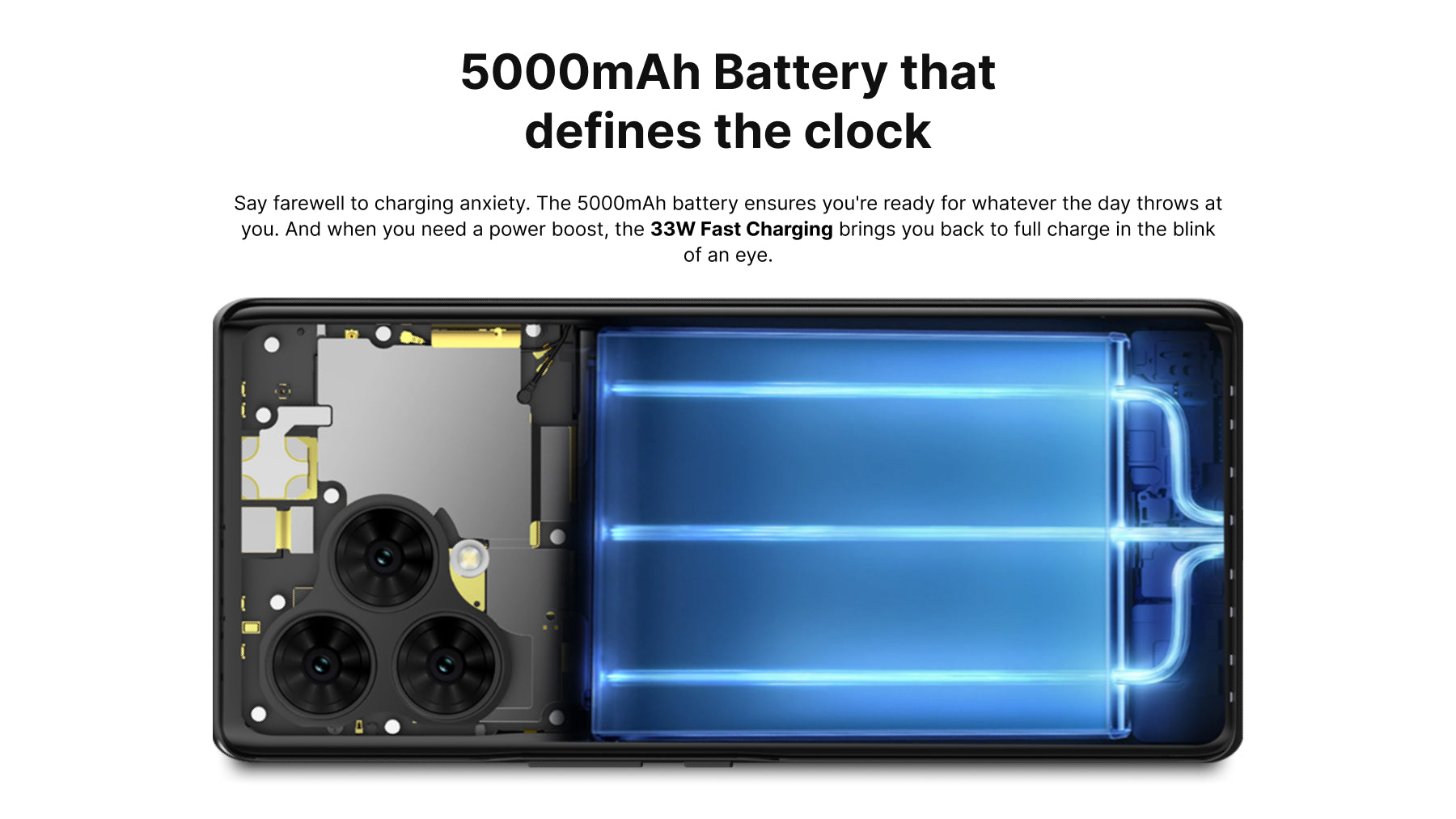 Battery: 5000mAh, 33W Fast Charger (Type-C Cable)