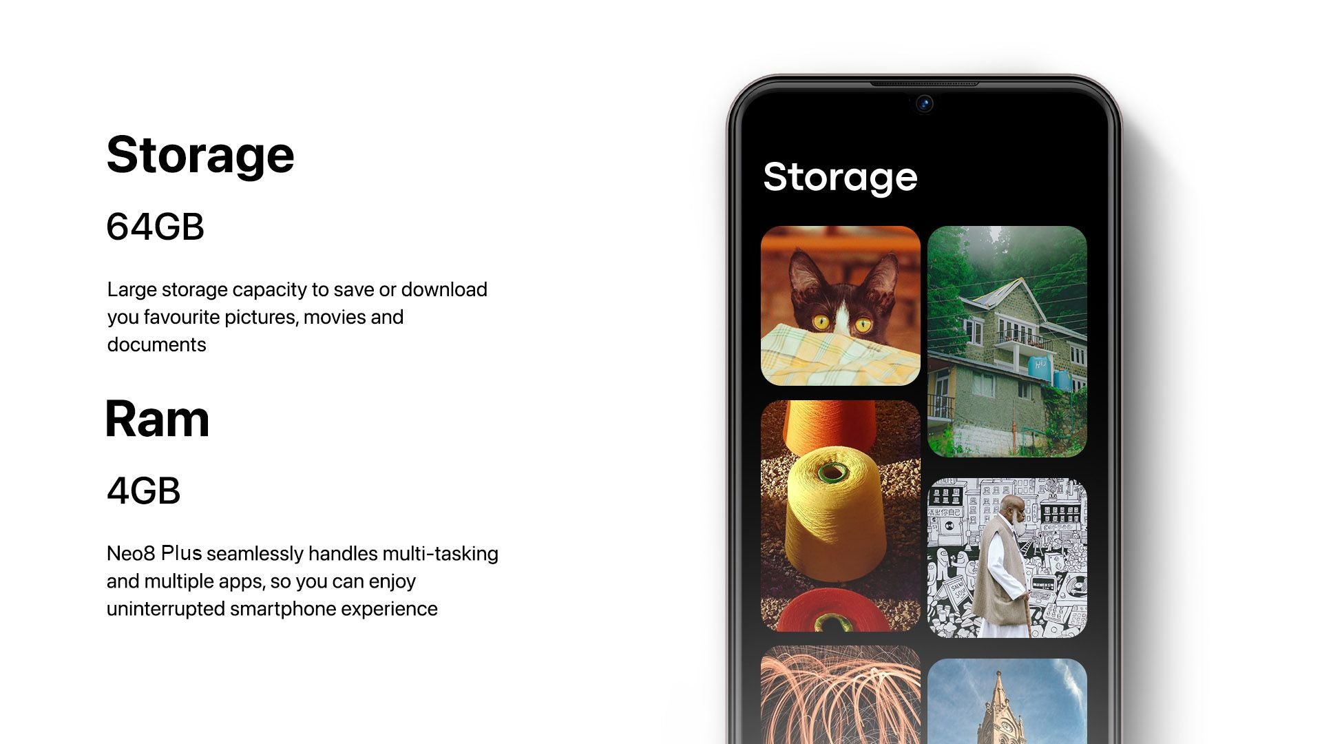 - Storage: 64GB ROM