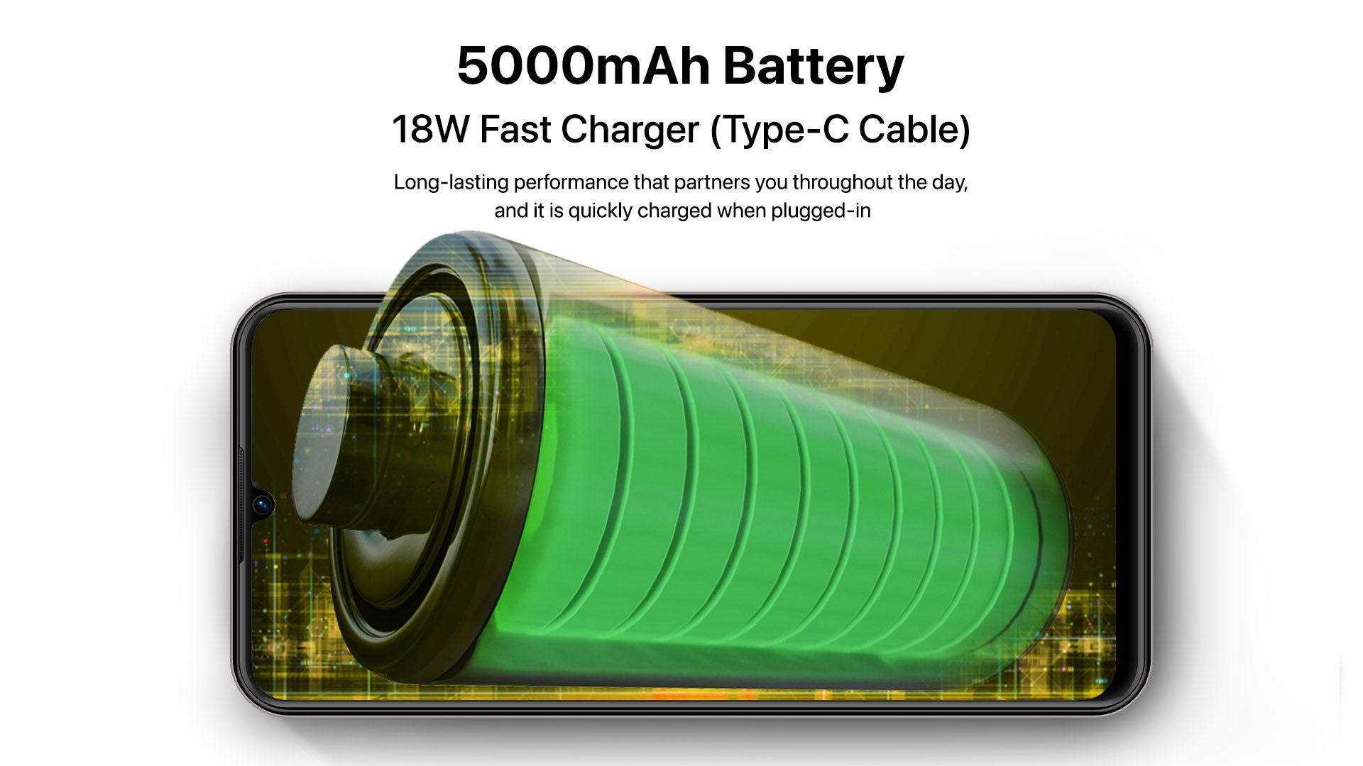 - Battery: 5000mAh, 18W Fast Charger (Type-C Cable)