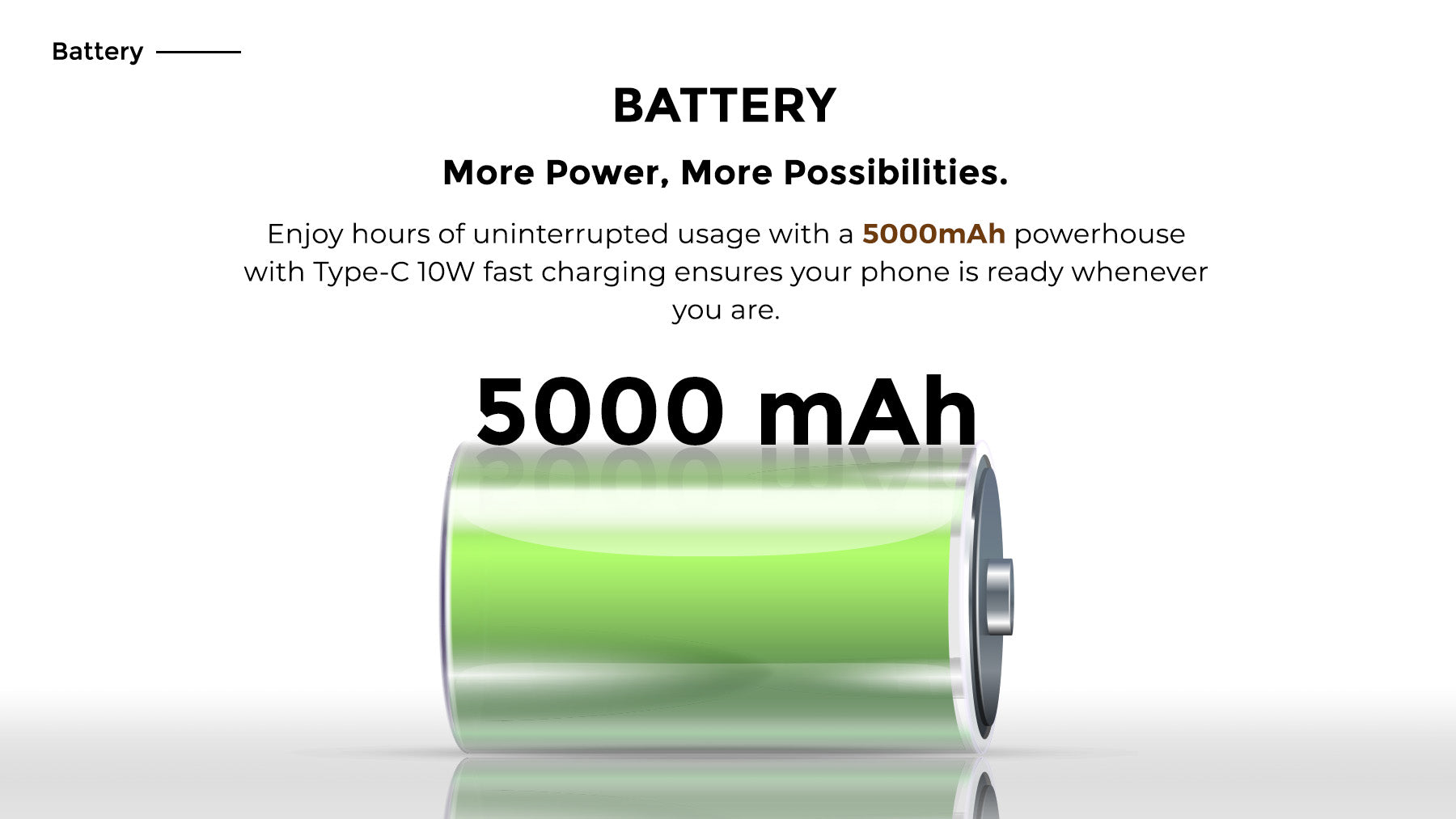 Battery: 5000mAh, 10W Charger (Type-C Cable)