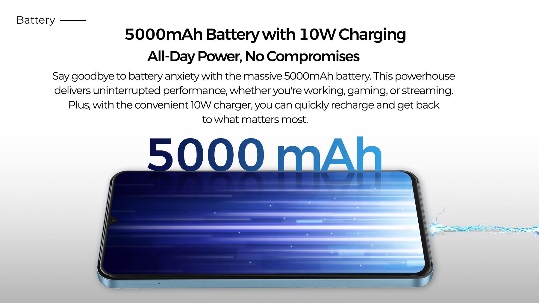 Battery: 5000mAh, 10W Charger (Type-C Cable)