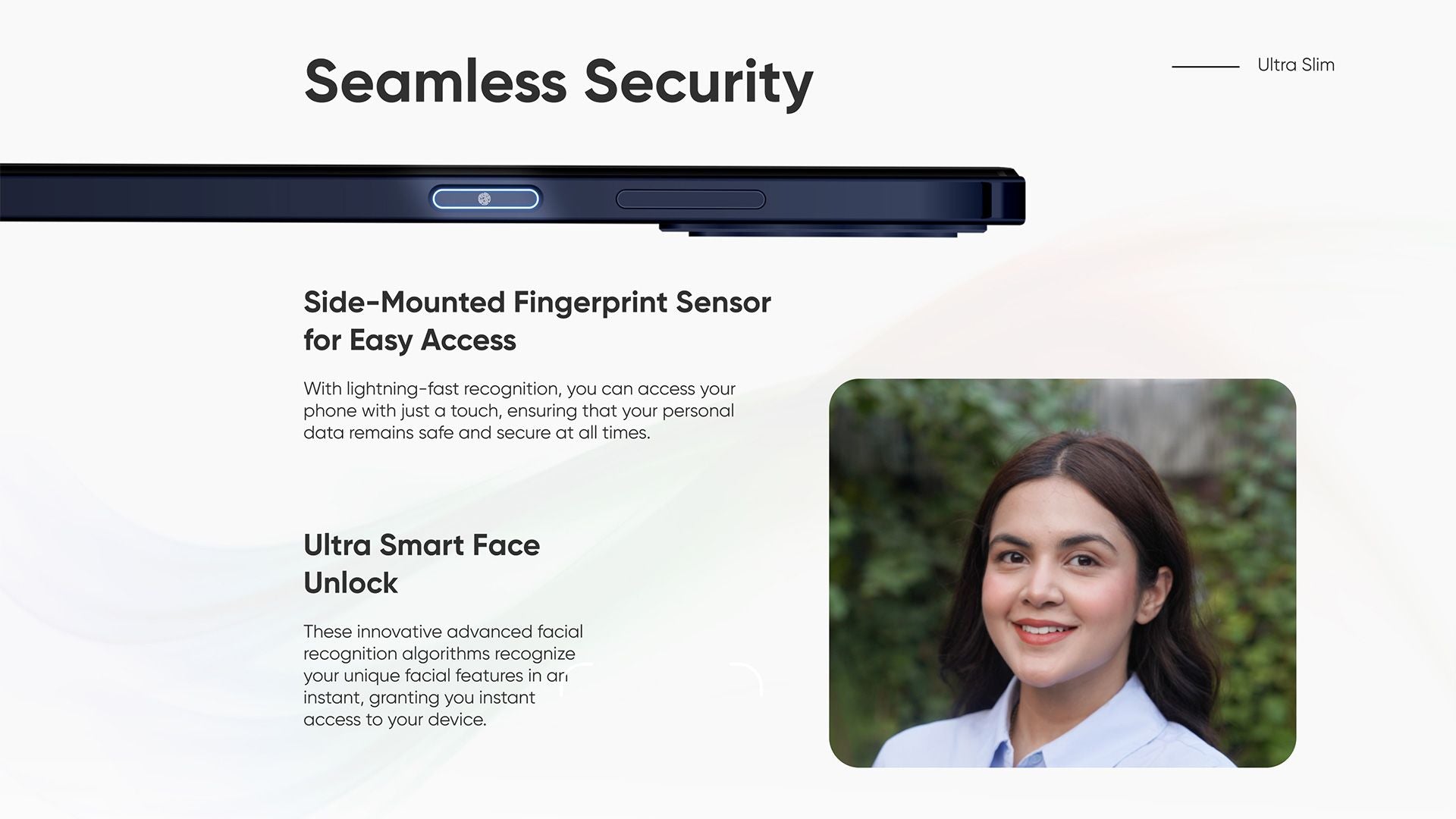 - Intelligent Security: Side-Mounted Fingerprint Sensor